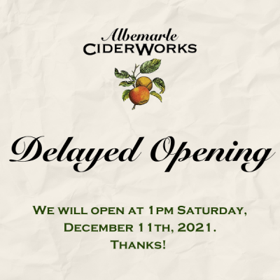 We will be opening at 1:00pm on Saturday, December 11th 2021 to accommodate a Private Event.